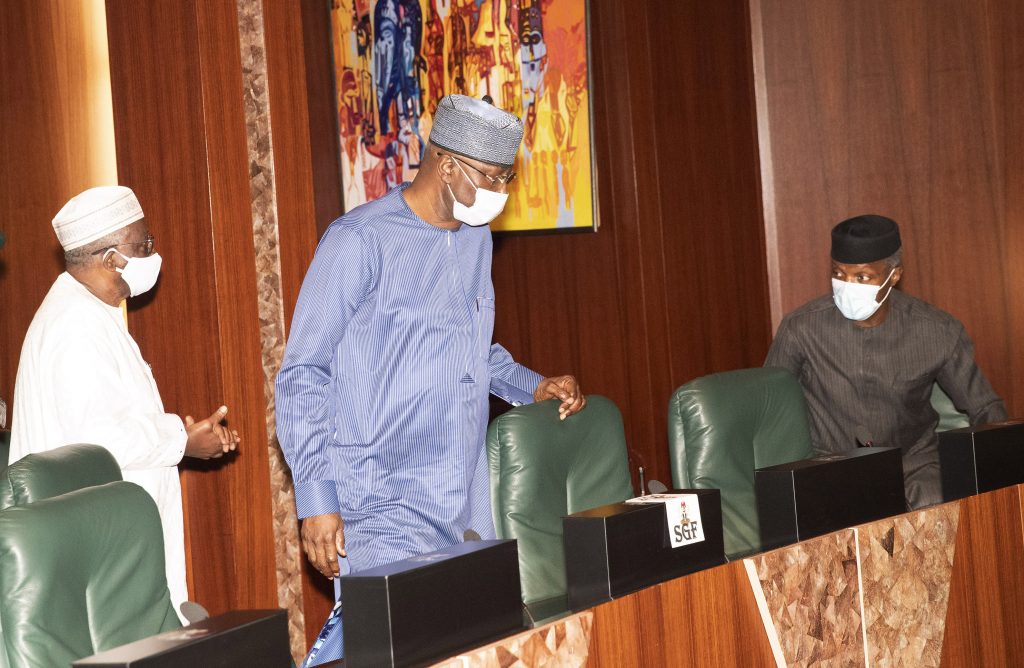 R-L; Vice President Yemi Osinbajo SAN, SGF Mr Boss Mustapha and Chief of Staff Prof Ibrahim Gambari