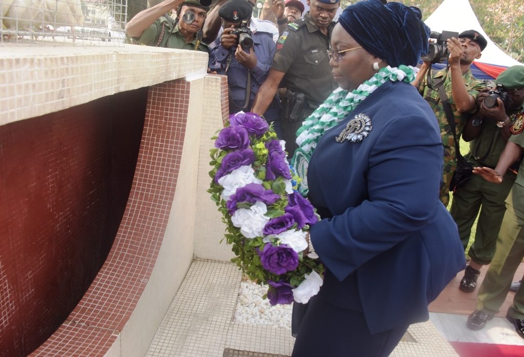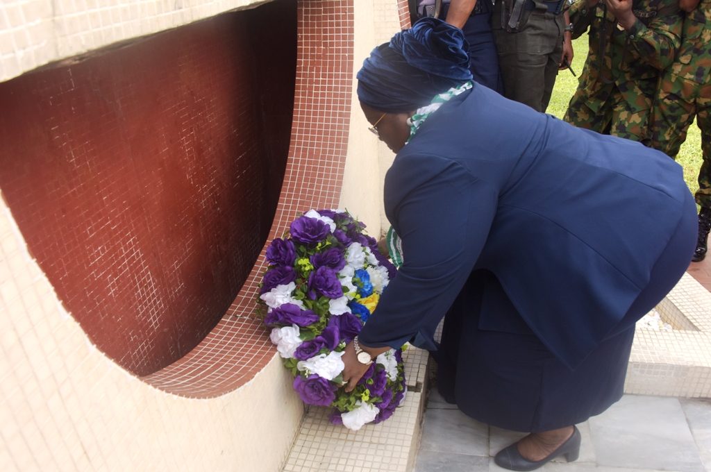 Representative of Lagos State Governor & Deputy Governor, Dr. (Mrs) Idiat Oluranti Adebule, performing the laying of wreath in commemoration of the 2019 Armed Forces Remembrance Day Celebration