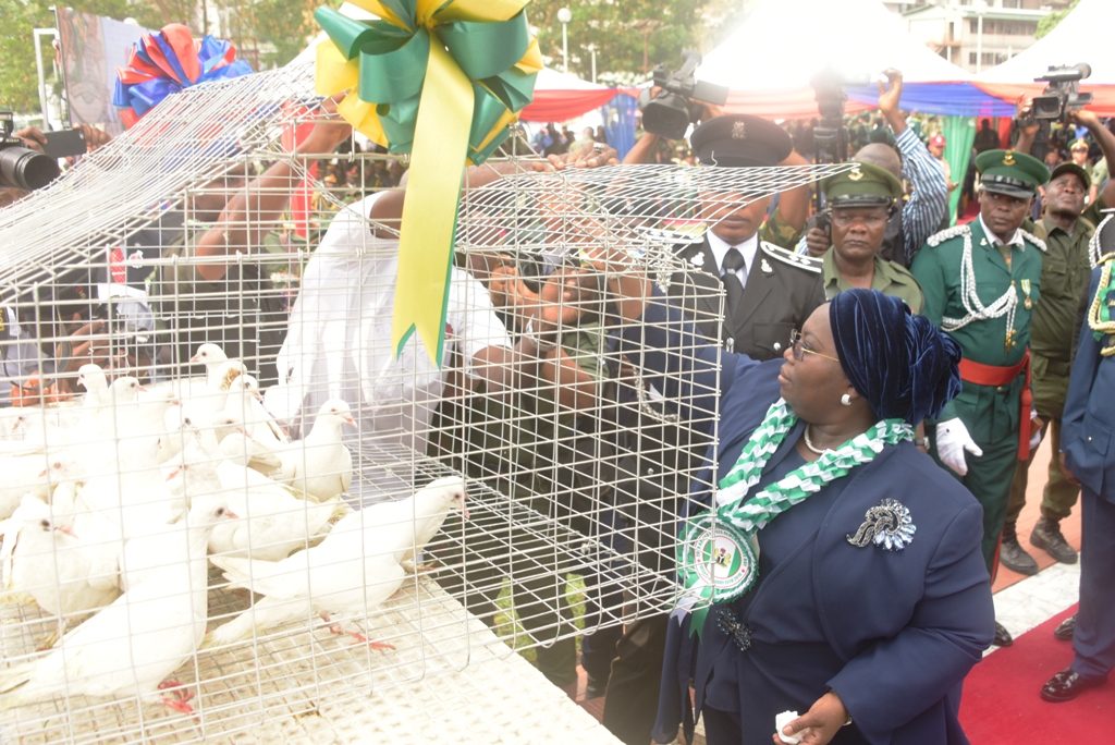 After the wreath-laying ceremony, several gun salutes was fired and the Deputy Governor led others to the pigeon case, where she released the birds to signify peace.