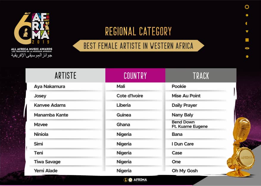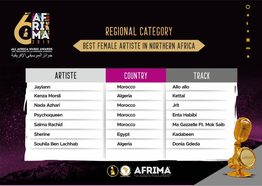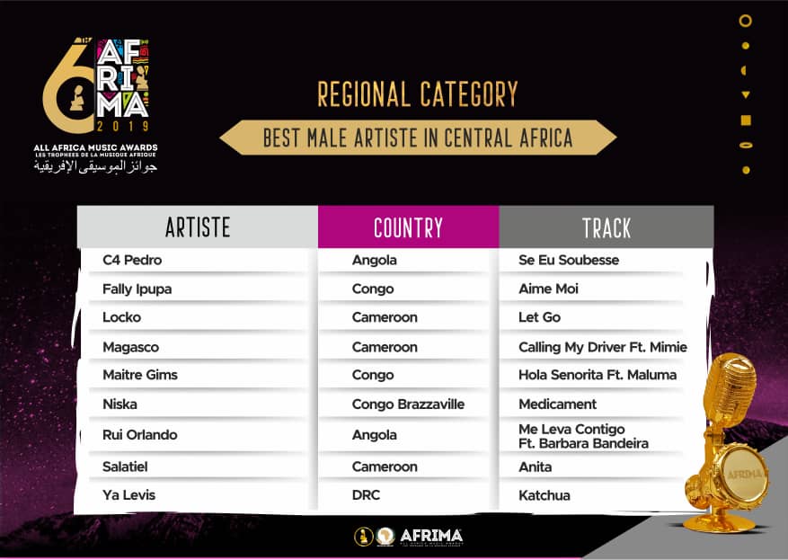 The Regional category for Best Female Artistes and Best Male Artistes of the five regions (Western, Southern, Eastern, Northern, and Central Africa) have been thoroughly selected from the entries to reveal artiste who will be competing at the 2019 awards ceremony.