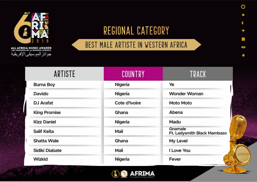 …Diamond Platnumz, Davido, Teniola, FallyIpupa, AKA, Shatta wale, Amara Brown, DJ Arafat make the Regional Category list