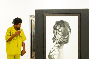 One of the artists, David Otaru, also known as Kaydee, shared the inspiration behind his artwork, “My work is mainly inspired by nostalgia. I grew up in the 90s, and my art reflects that era in a modern way. I use negative imagery in my pieces to create a more interactive experience for the audience.”