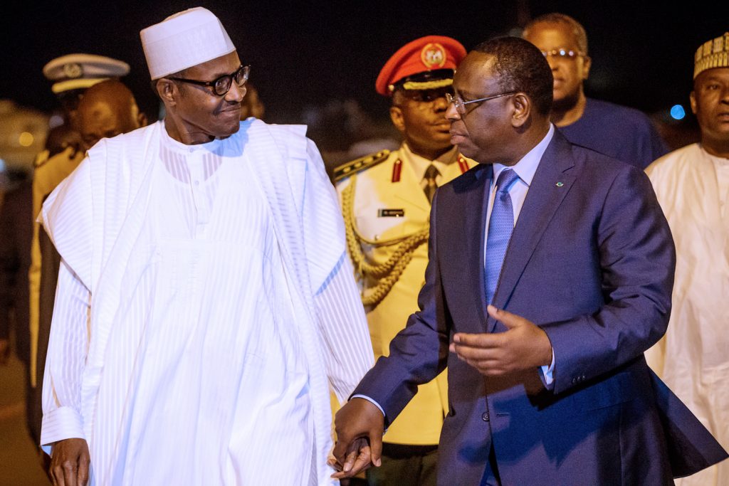 President Buhari with President Macky Sall of Senegal as he arrives Dakar Senegal ahead of Presidential Inauguration Ceremony on Monday, April 1, 2019.