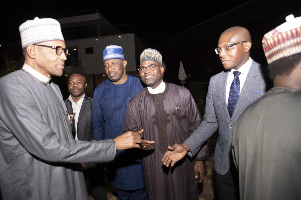 President Buhari is accompanied by Governor Muhammad Inuwa Yahaya of Gombe State, Governor Bello Matawalle of Zamfara State and Governor Kayode Fayemi of Ekiti State.