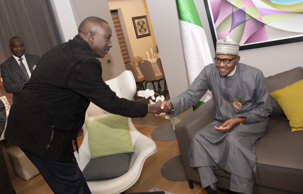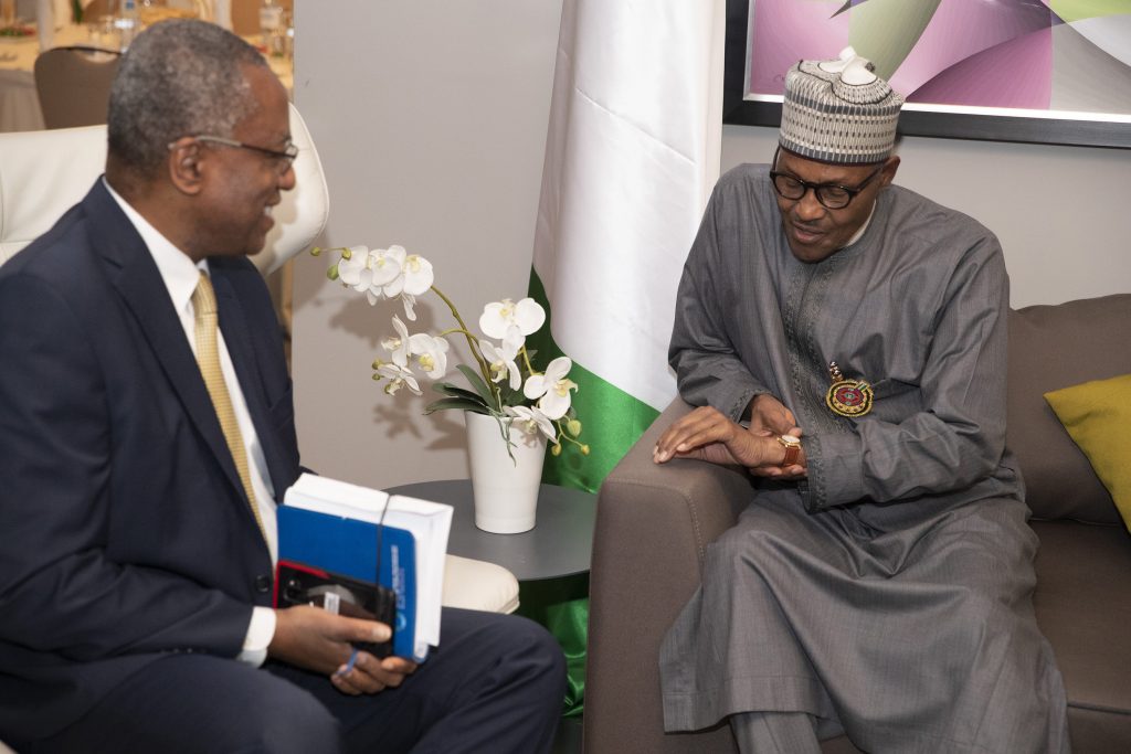 President Muhammadu Buhari chat with Minister Foreign Affairs, Mr Geoffrey Onyeama