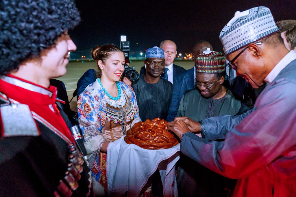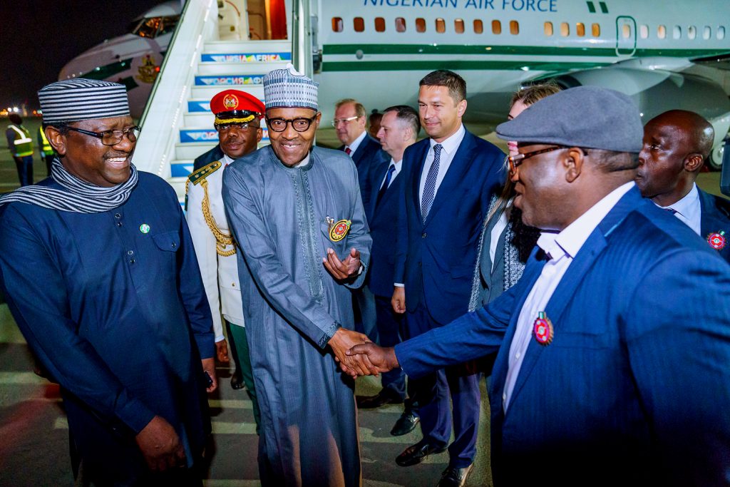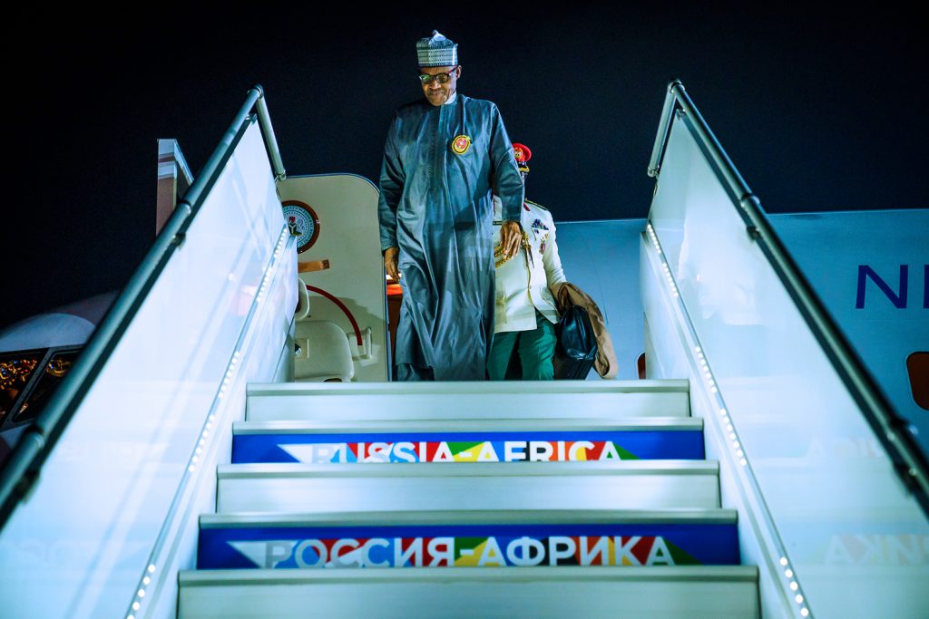 President Muhamamdu Buhari Monday arrived at the Sochi International Airport, Russia, for a three-day inaugural Russia-Africa Summit and Economic Forum, which will focus on peace, security and development.