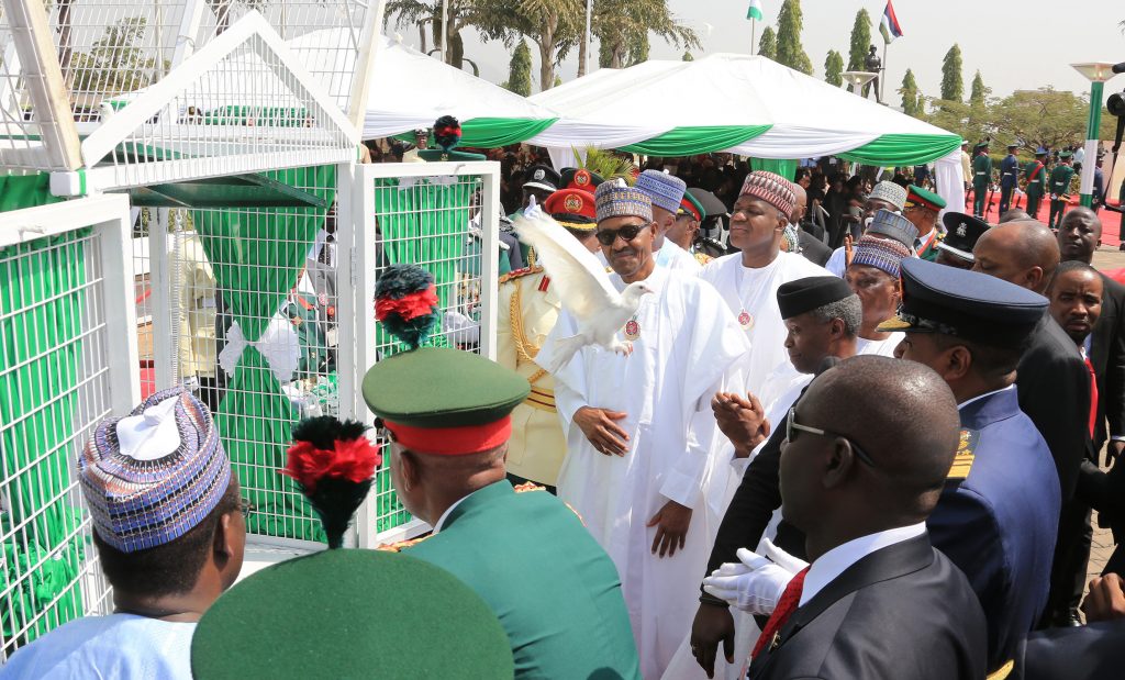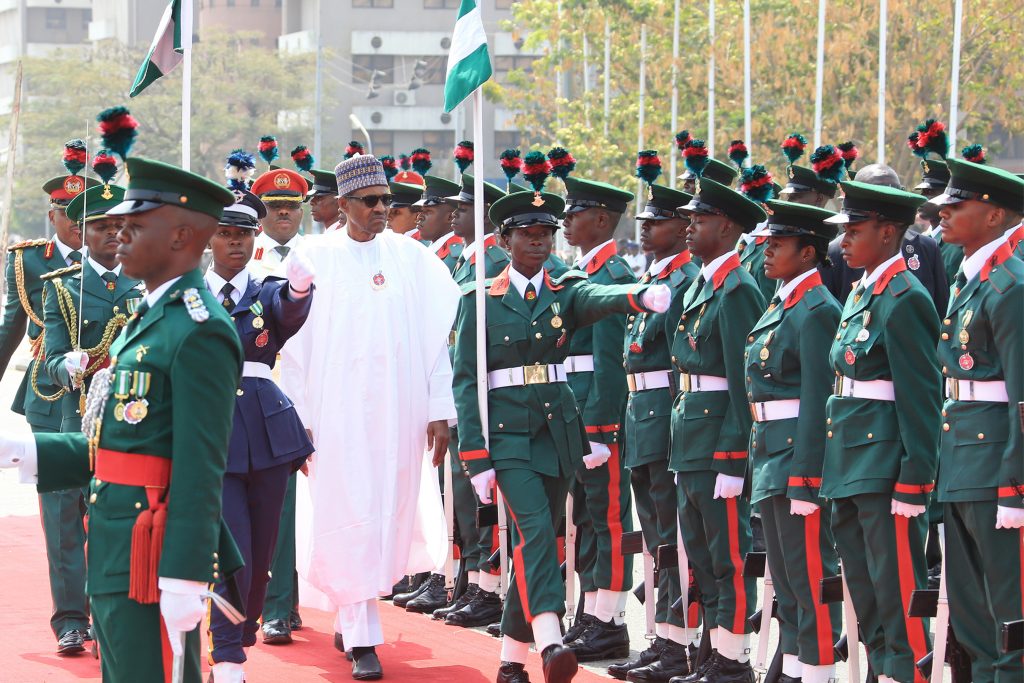 President Muhammadu Buhari inspects the guards on parade