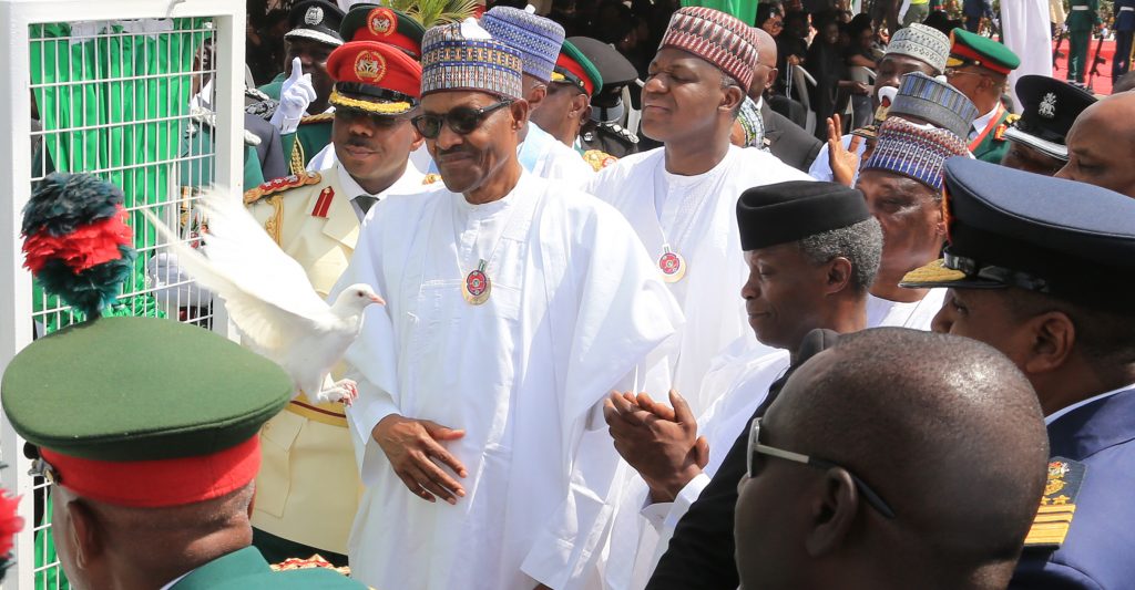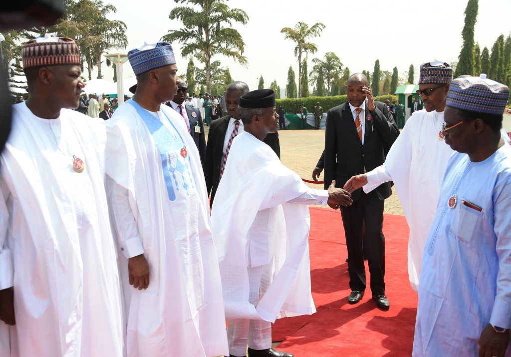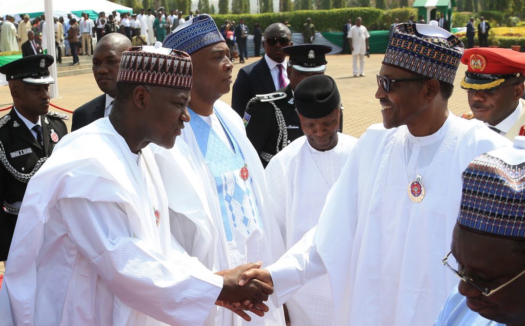 R-L; President Muhammadu Buhari, Vice President Yemi Osinbajo and others