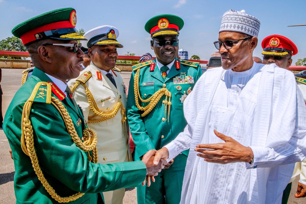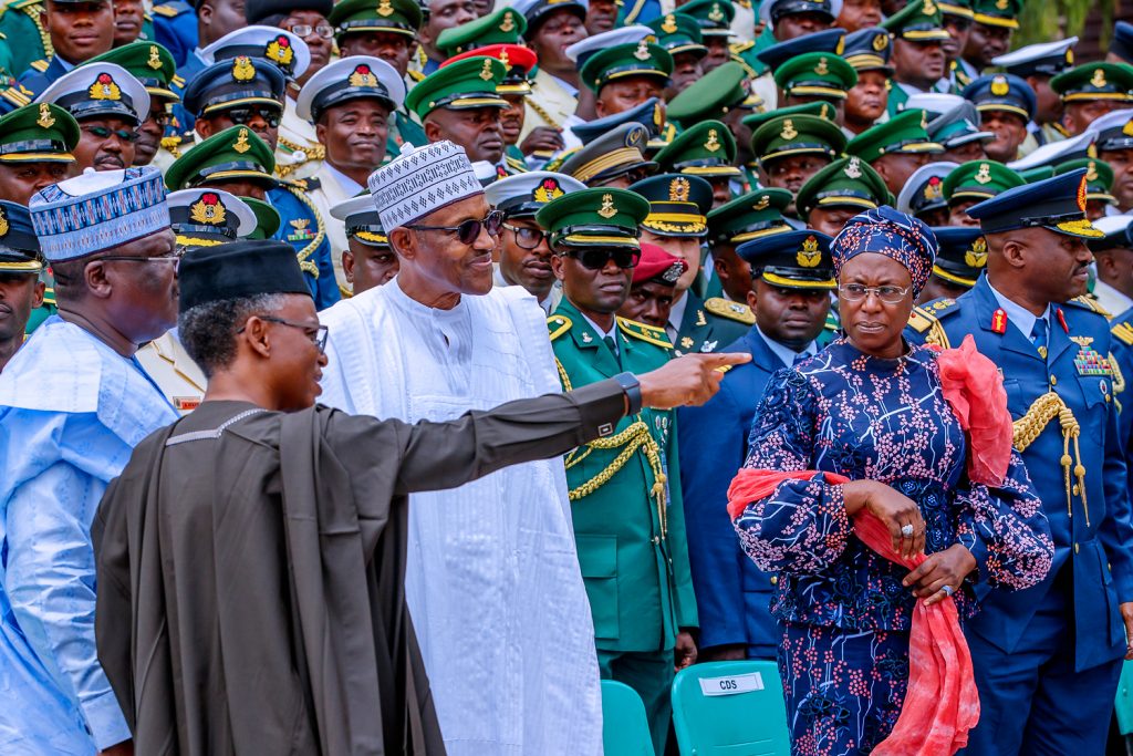 President Buhari attends the graduation ceremony of Senior Course 41 of the Armed Forces Command and Staff College (AFCSC) in Kaduna on July 11, 2019.