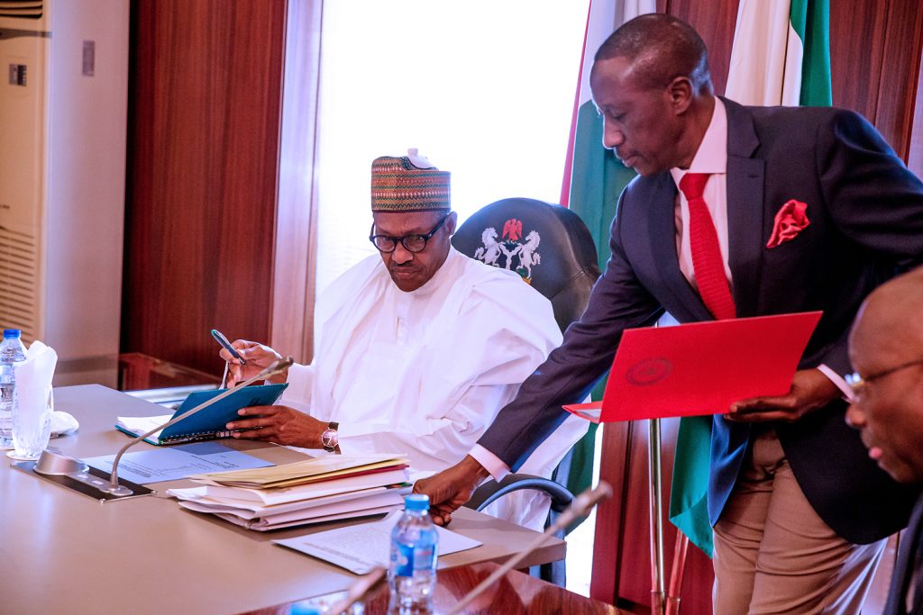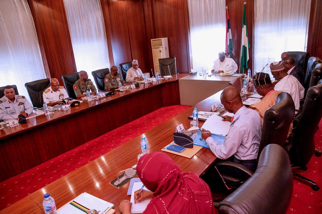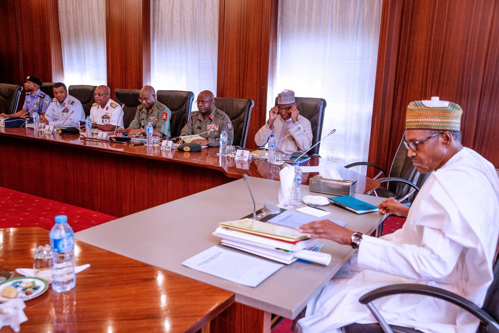 During a security meeting taking place at the State House, Abuja on Thursday, March 28, 2019.