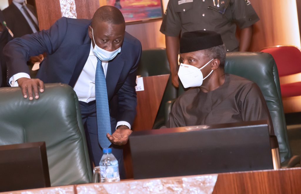 PRESIDENT BUHARI PRESIDES OVER A VIRTUAL FEC MEETING. 5. President Muhammadu Buhari, Vice President Yemi SAN and SGF Mfr Boss Mustapha during A virtual FEC Meeting held at the Council Chambers, State House, Abuja. PHOTO; SUNDAY AGHAEZE. OCT 14 2020