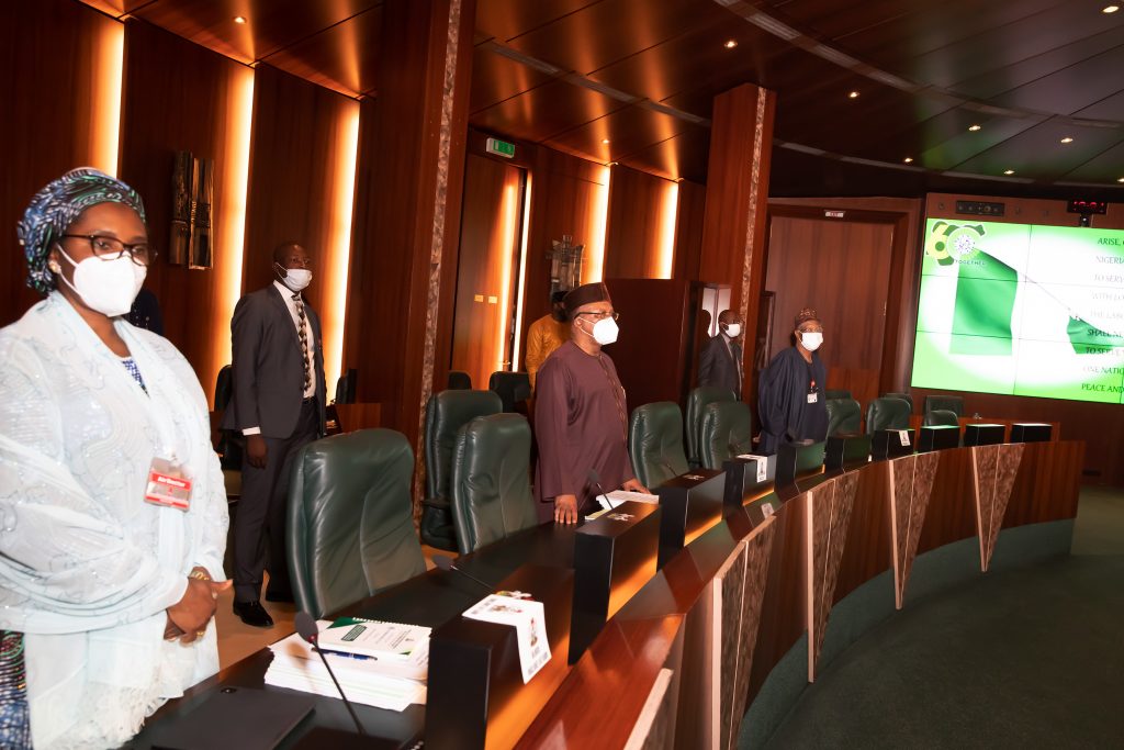 A virtual Federal Executive Council (FEC) meeting held at the Council Chambers, State House, Abuja on Wednesday, October 14, 2020.