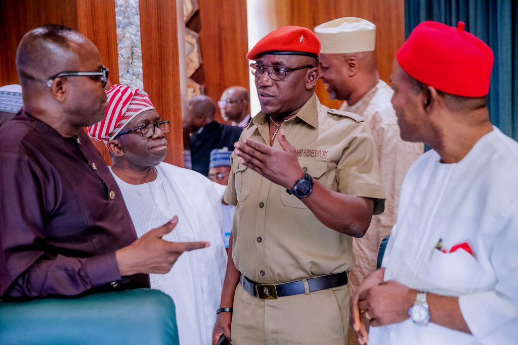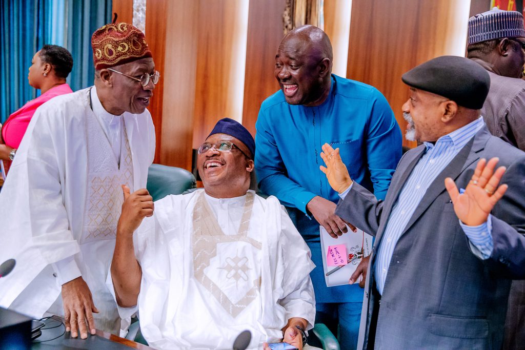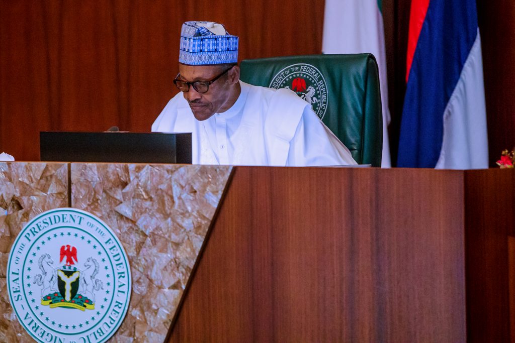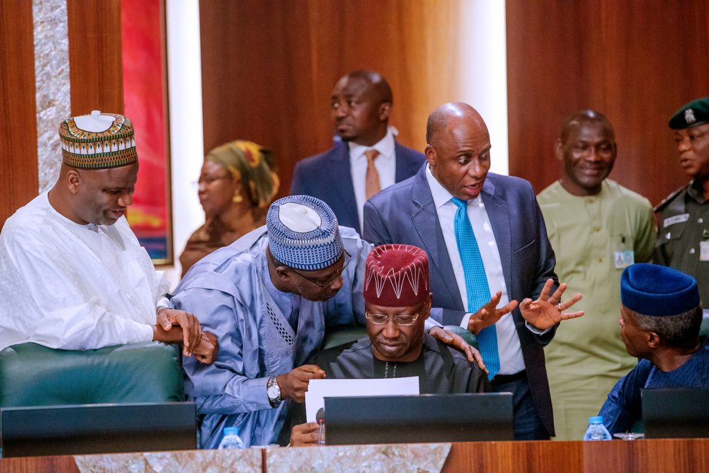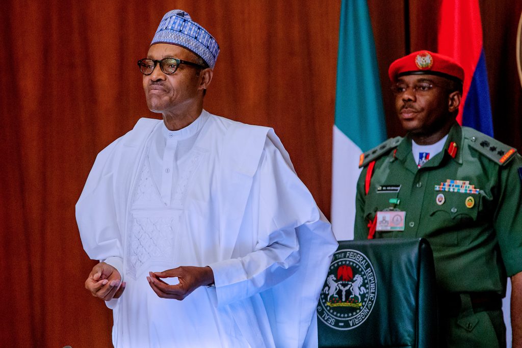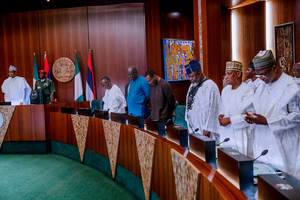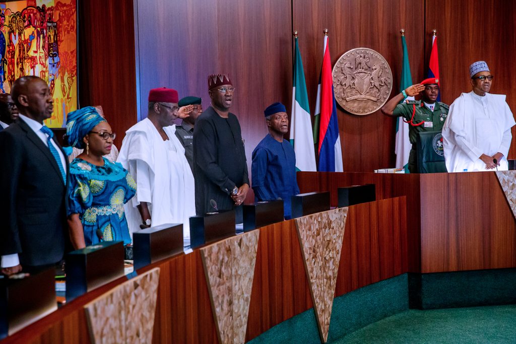 President Buhari with R-L: Vice President Yemi Osinbajo, Secretary to the Government of Federation Boss Mustapha, Chief of Staff to the President Abba Kyari, Head of Service of the Federation Mrs Winifred Eyo-Ita and National Security Adviser Babagana Monguno as he presides over Federal Executive Council (FEC) Meeting in State House, Abuja on Tuesday, March 13, 2019.