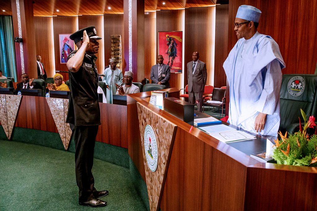 President Muhammadu Buhari presides over Police Council that confirms Inspector General of Police, Mr. Mohammad Adamu during the confirmation by the Police Council at the State House, Abuja on Thursday, May 23, 2019.