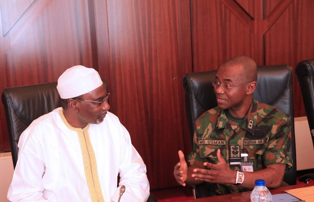 Director General NIA, Alhaji Ahmed Rufai Abubakar and Chief of Defence Intelligence, (CDI), Air Vice Marshal Mohammed Saliu Usman