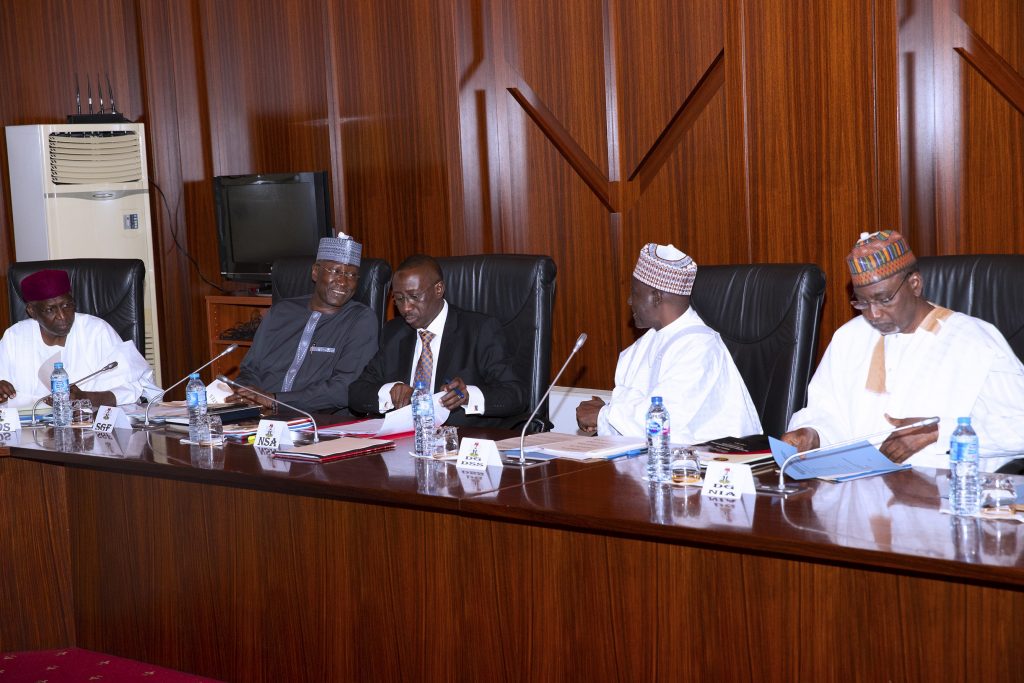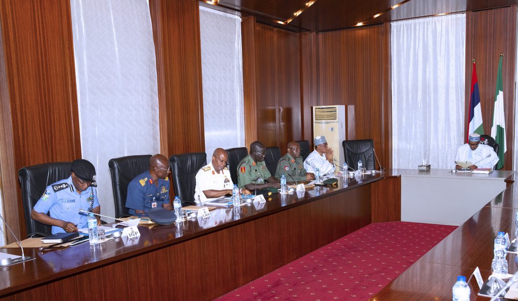 During a security meeting at the State House, Abuja on Thursday, May 9, 2019.