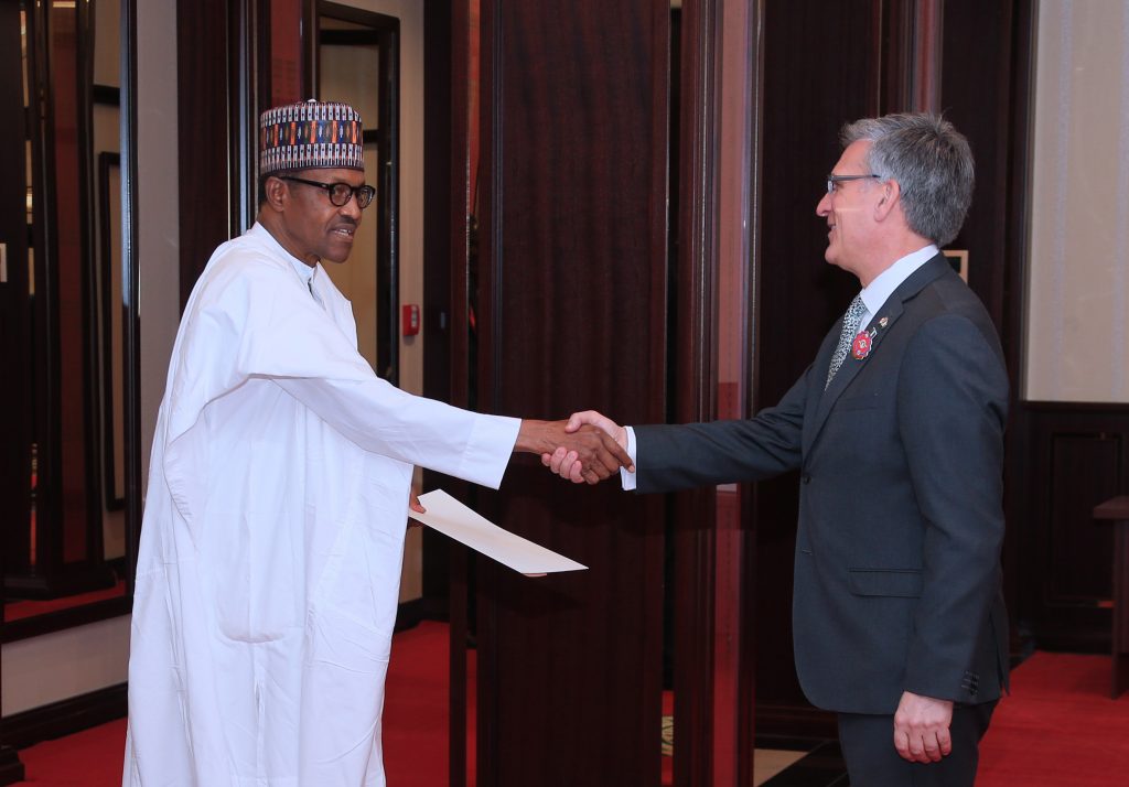 President Muhammadu Buhari receives Letters of Credence from Ambassador of Argentina, High Commissioners of Canada and United Kingdom to Nigeria at the State House, Abuja on Monday, January 14, 2019. Photo: Sunday Aghaeze.