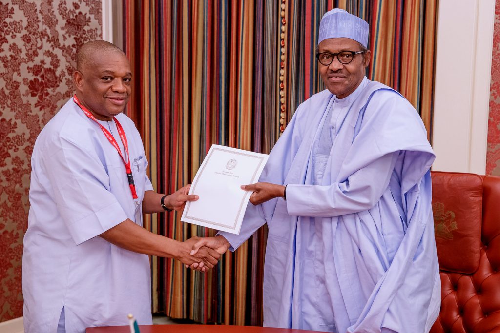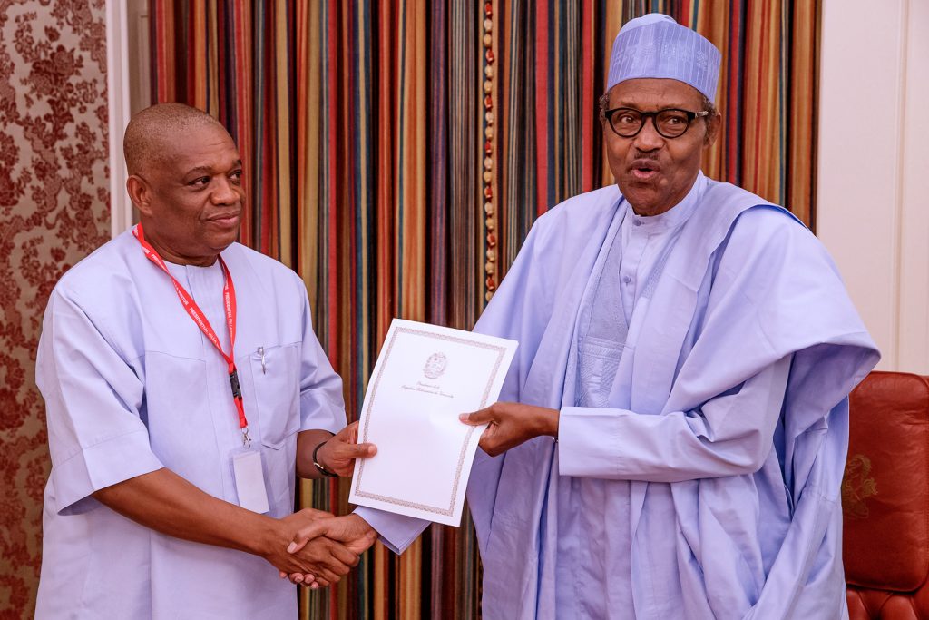 President Buhari receives in audience former Abia State governor, Orji Uzor Kalu in State House, Abuja on Monday, May 27, 2019.