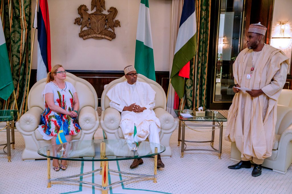 President Buhari receives in farewell audience H.E. Mrs Inger Ultvedt, the Outgoing Ambassador of Sweden to Nigeria in State House, Abuja on Monday, February 4, 2019.