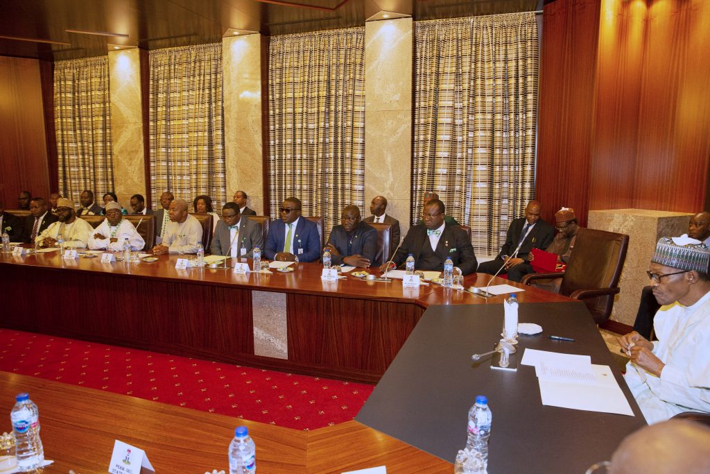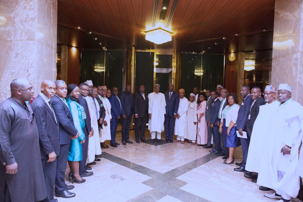 President Muhammadu Buhari receives members of Nigeria Medical Association led by the new president, Dr Faduyile at the State House, Abuja on Tuesday, July 16, 2019.
