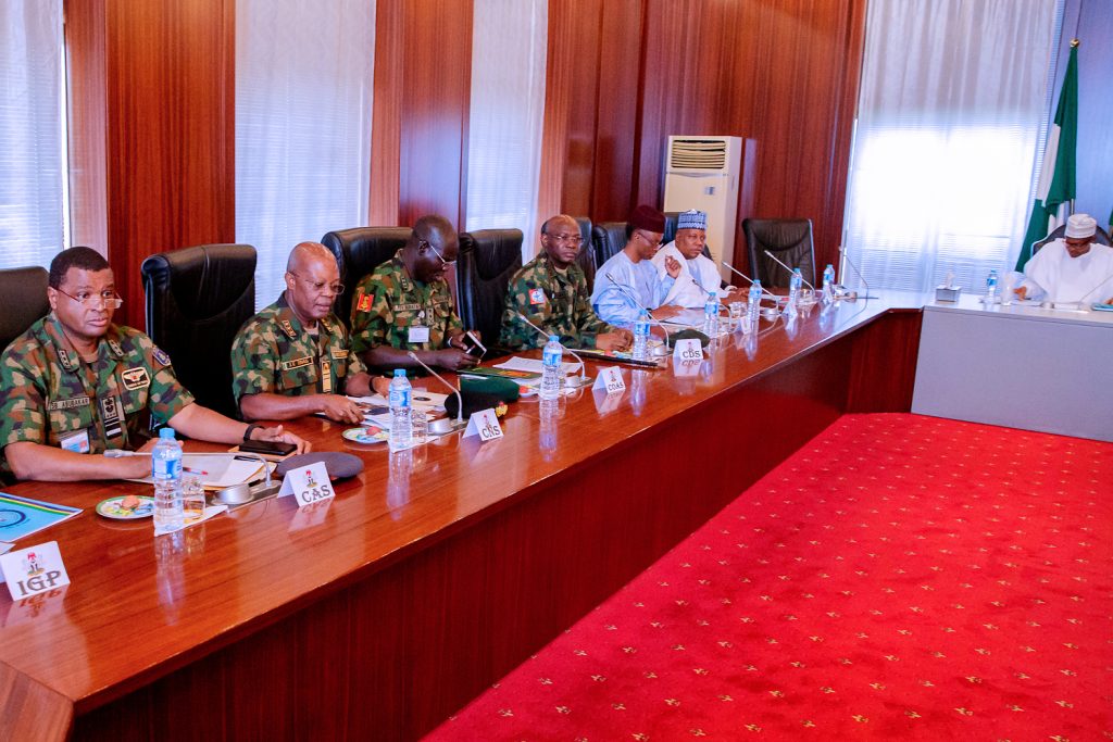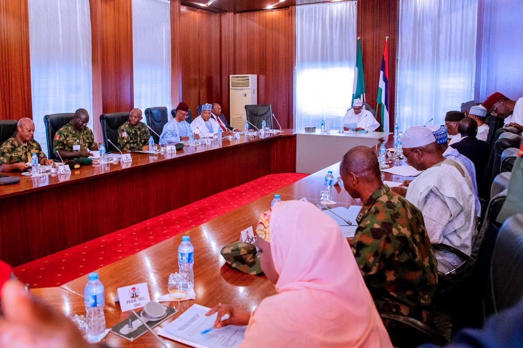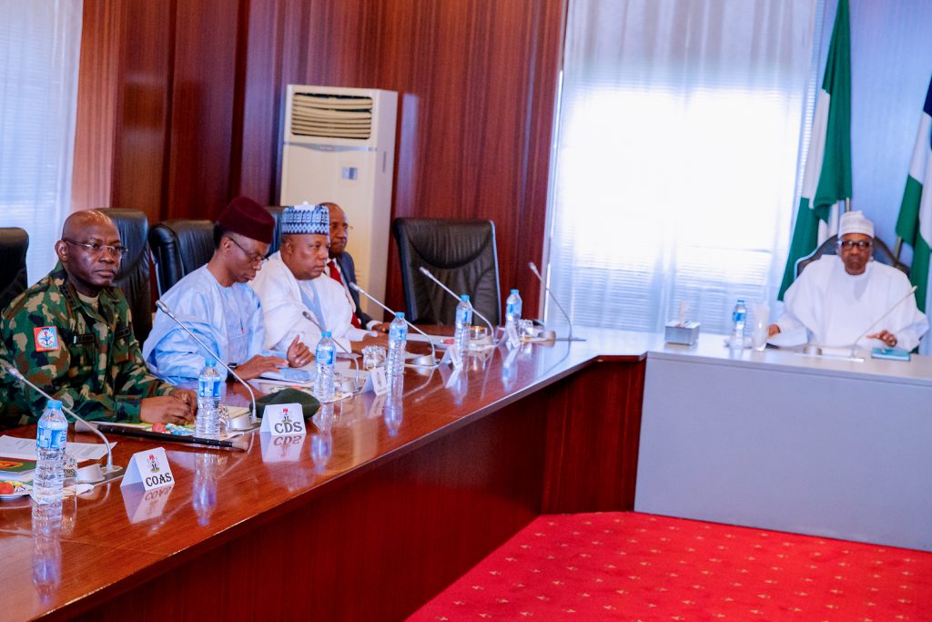 President Buhari receives Security briefing from Governors of Borno, Kaduna and Adamawa in State House, Abuja on Tuesday, February 19, 2019.