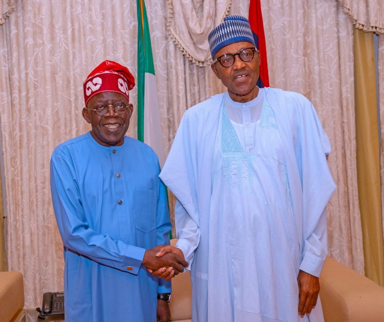 Buhari receives Tinubu on a thank you visit