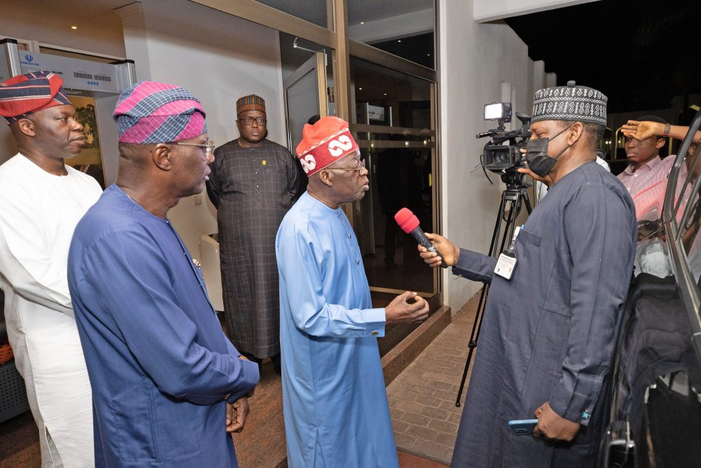 PRESIDENT BUHARI RECEIVES THANK YOU VISIT FROM ASIWAJU 1A&B. L-R; APC Presidential Candidate Asiwaju Bola Tinubu, and President Muhammadu Buhari during a thank you visit at the Presidential Villa Thursday Night in Abuja. PHOTO; SUNDAY AGHAEZE. JUNE 9TH 2022