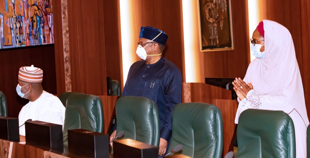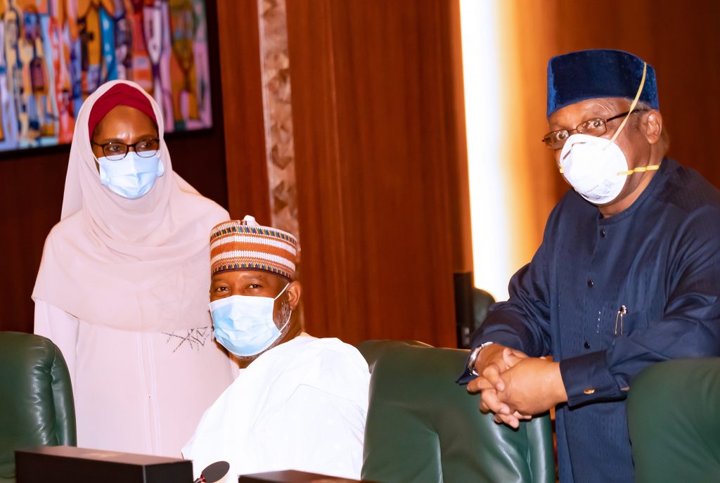 R-L; Minister of Finance, Hajiya Zainab Ahmed, Minister of Health Dr Osagie Ehinare, Minister of Aviation and Sen Hadi Sirika