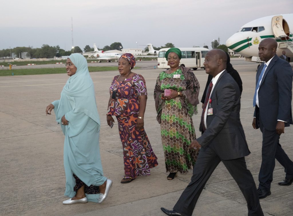 L-R; Wife of the President Dr. Aisha Muhammadu Buhari, Media Aide to the Wife of the President Mrs. Bisi Ajayi and PA to the President on Social Media, Mrs. Lauretta Onochie