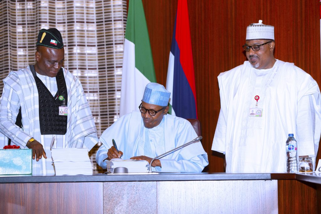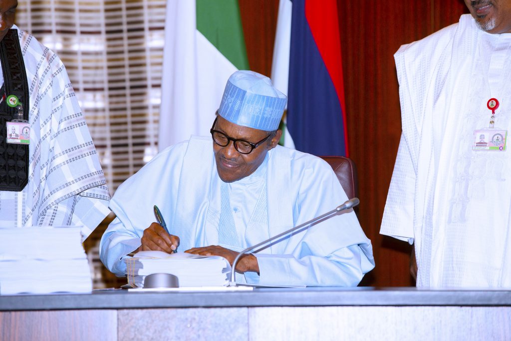 President Muhammadu Buhari signs 2019 Budget on Monday, May 27, 2019.