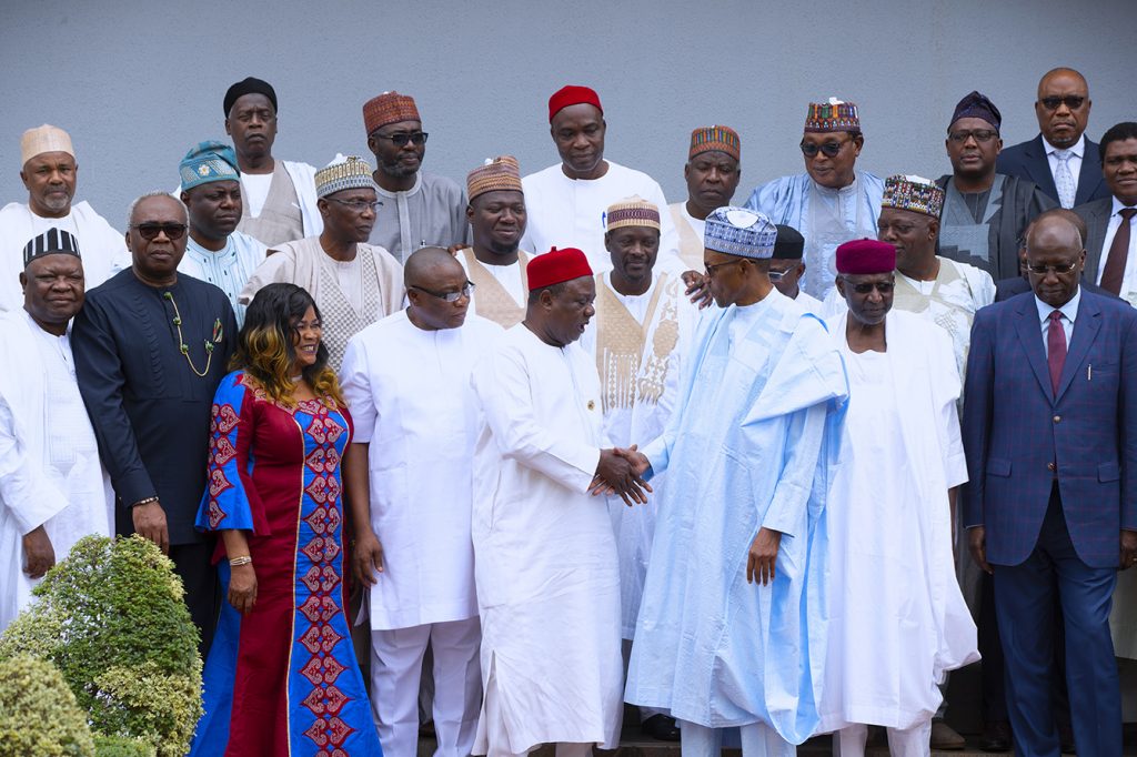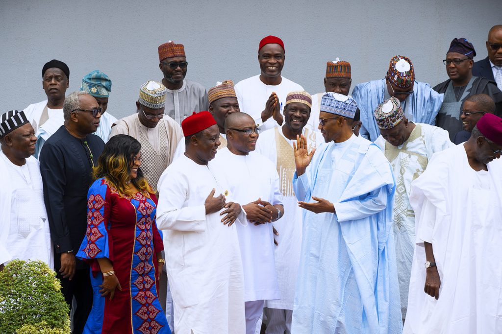 PRESIDENT BUHARI SWEAR-IN RMAFC MEMBERS 6. President Muhammadu Buhari chat with the Abia Commissioner, H.E Chris Alozie Akomas, Chairman Revenue Mobilisation, Allocation and Fiscal Commission, Engr Eliam Mbam and others during the swearing-in of Chairman and Commissioner of the Commission held at the State House, Abuja. PHOTO; SUNDAY AGHAEZE. JUNE 27 2019