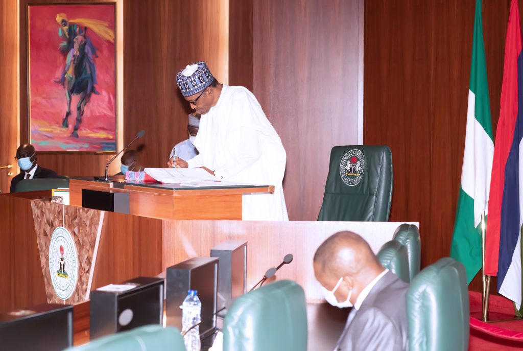 President Muhammadu Buhari during the swearing in four new Permanent Secretaries held at the Council Chambers, State House, Abuja on Wednesday, September 30, 2020.