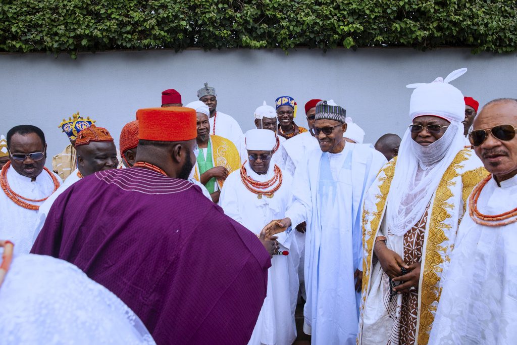 President Muhammadu Buhari received Oba of Benin HRM Ewuare 11 and Edo State Traditional Rulers and Chiefs at the State House, Abuja on Wednesday, July 3, 2019.