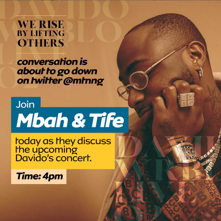 Mbah and Tife recently hosted a Twitter space that was held in anticipation of the upcoming Davido O2 concert courtesy of MTN Nigeria. Twitter users won over N50,000 worth of airtime.