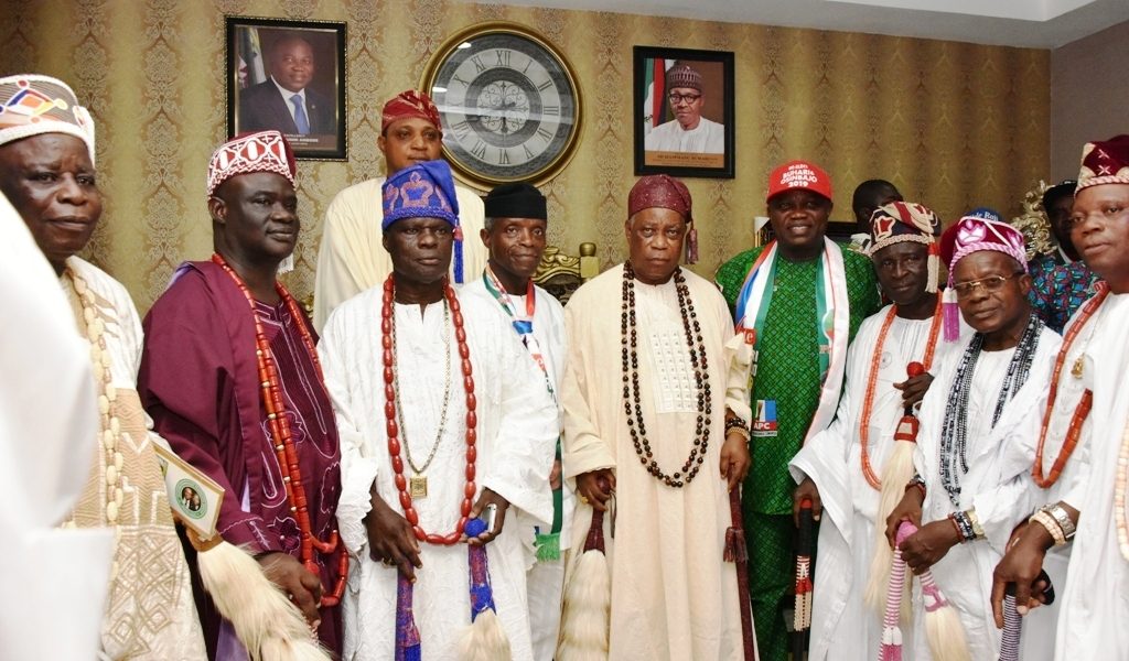 Vice President, Prof. Yemi Osinbajo (4th left); Lagos State Governor, Mr. Akinwunmi Ambode (4th right) and Oloja of Epe, Oba Kamorudeen Animashaun (middle) and other Obas in Epe