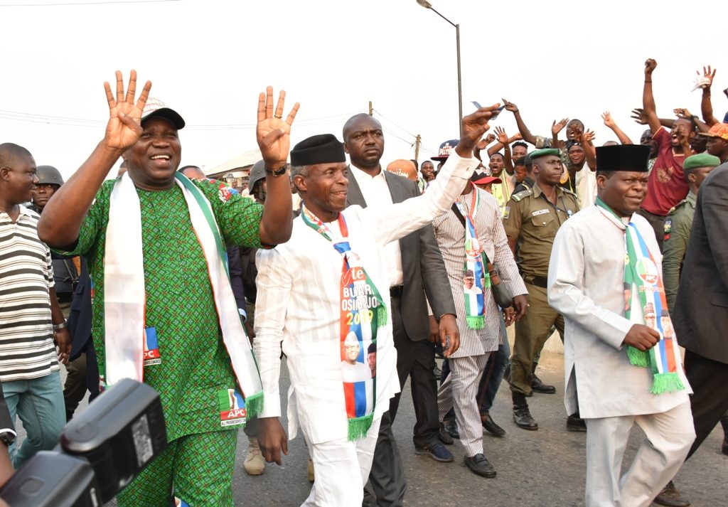 Also speaking, Governor Ambode, who embarked on door-to-door campaign with the VP in Epe, urged residents to troop out on election day and vote massively for all APC candidates.