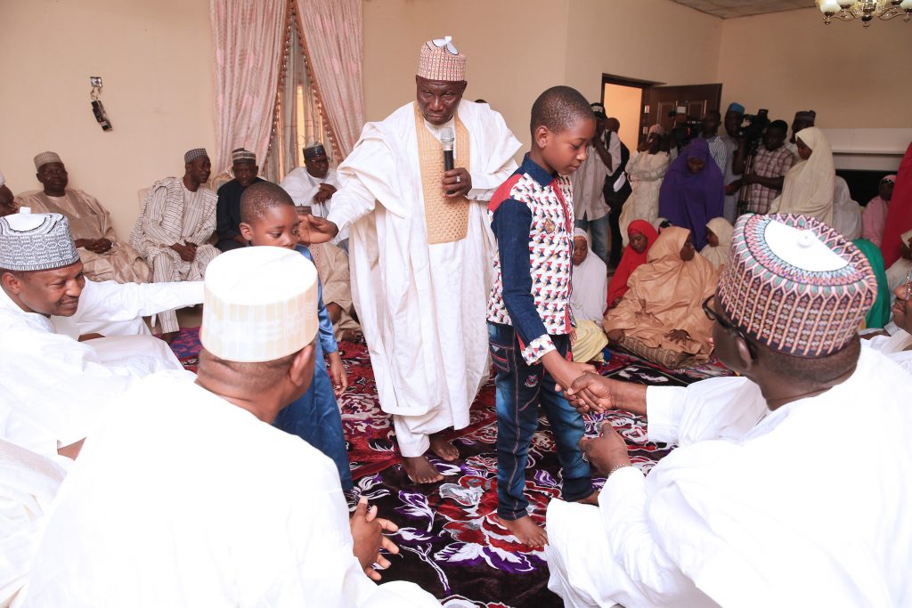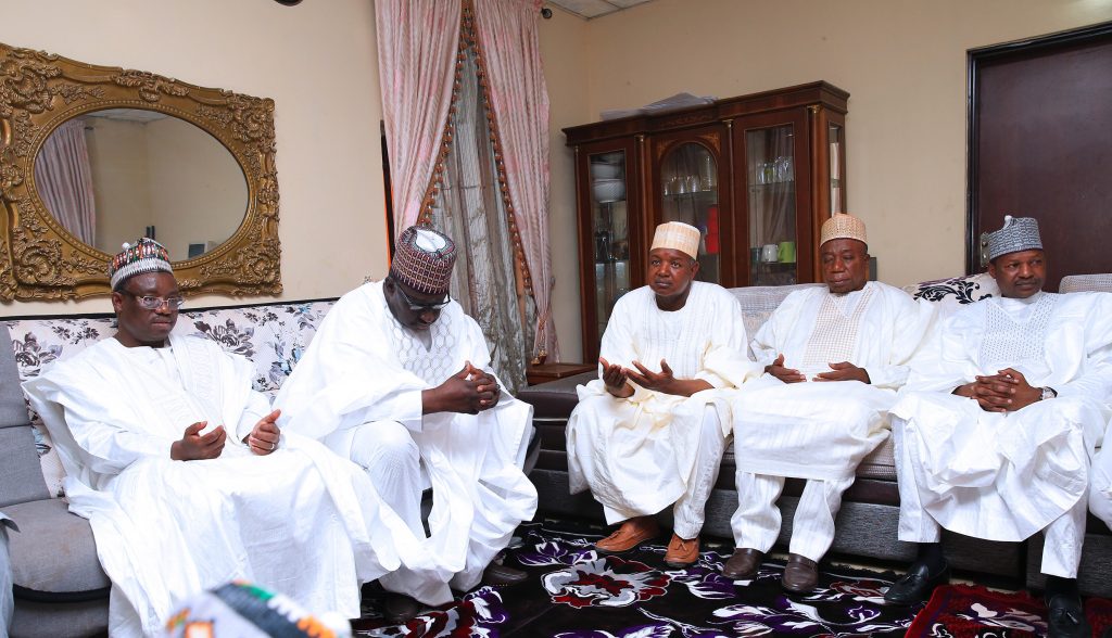 Minister of Justice and Attorney General of the Federation, Abubakar Malami, Kebbi State Governor, Senator Abubakar Atiku Bagudu, SSAP to the President On Domestic and Social Events condole the Children of Late Hon Faruku Bagudu during a FGN delegation Condolence visit to the Family of the Late brother to the State Governor in Birnin Kebbi, Kebbi State at the weekend (Saturday, March 30, 2019).