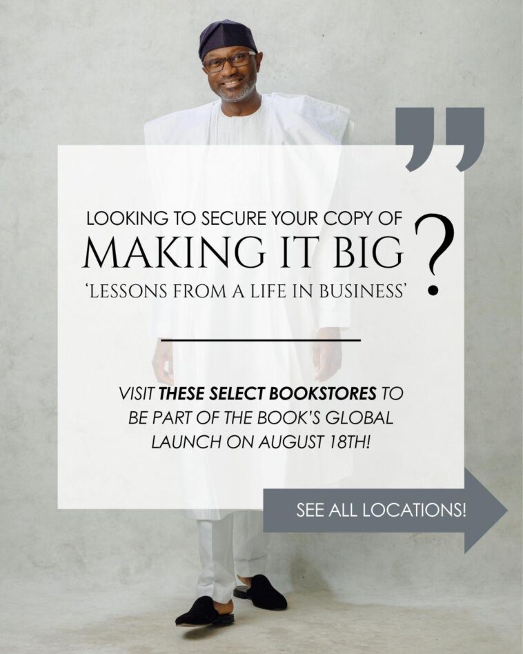 Praised by tycoons, economists and intellectuals, Otedola’s book, available for preorder on makingitbigbook.com and waterstones.com, will be on the shelves of bookstores in Abuja, Benin city, Enugu, Ibadan, Lagos, Port Harcourt, Umuahia, Uyo and Asaba.