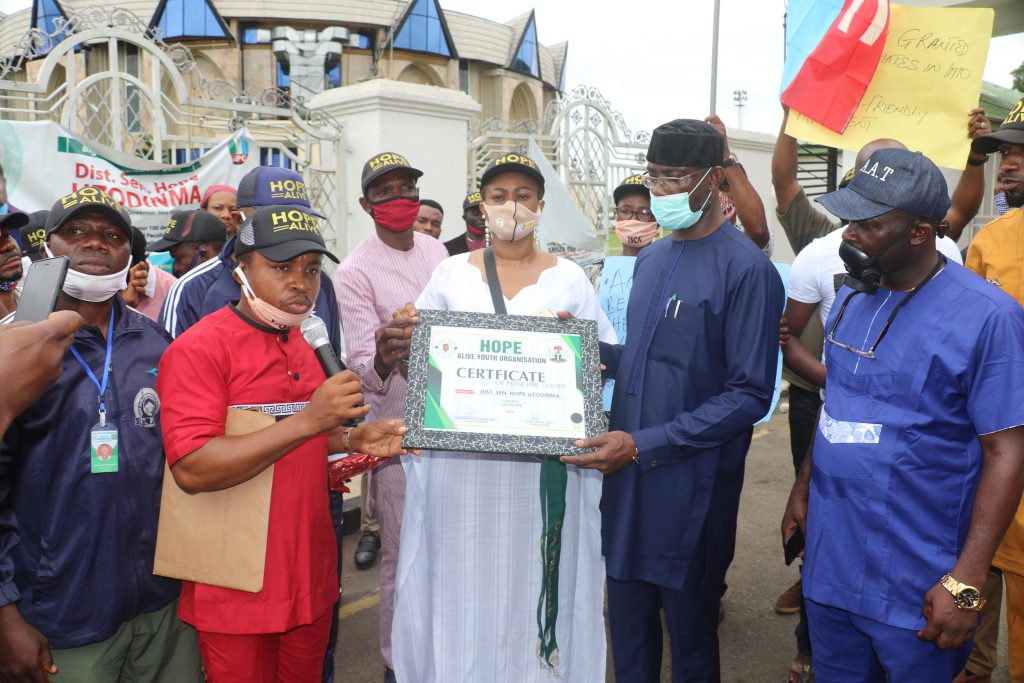 Mr. Nwachuku commended them for their efforts in propagating the shared prosperity agenda of the Governor and urged other groups who have not queued into the mantra to borrow a leaf from Hope Alive Youth Organization so as to move Imo to a greater height.