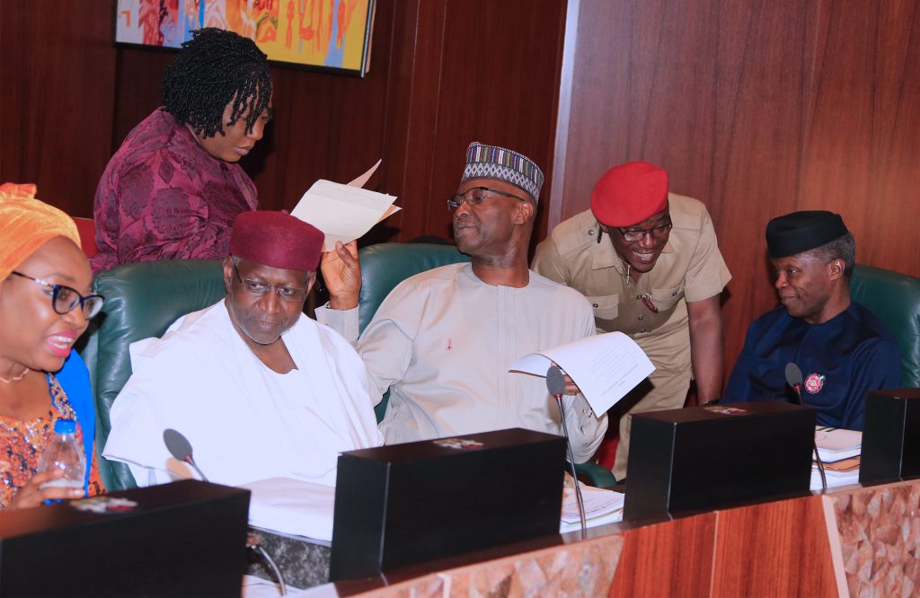 R-L; Vice President Yemi Osinbajo, Minister of Youth and Sports, Solomon Dalung, SGF Mr Boss Mustapha, Chief of Staff Mallam Abba Kyari, Head of Civil Service of the Federation, Mrs Winifred Oyo-Ita