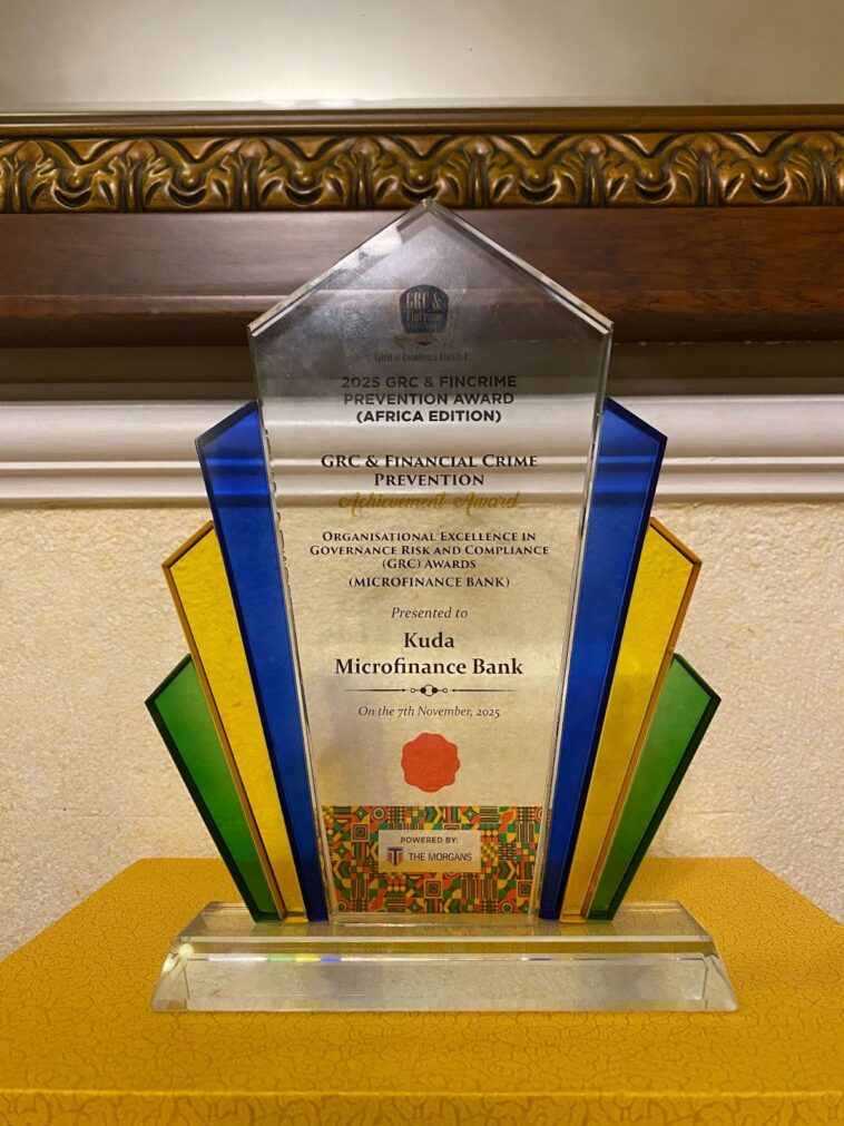 Kuda Microfinance Bank (Kuda MFB) has been honoured with the Organisational Excellence in Financial Crime Prevention (Microfinance Bank) award at the 2025 GRC & Financial Crime Prevention Summit & Awards, held at the Lagos Marriott Hotel on November 7, 2025. The award recognises Kuda’s outstanding commitment to governance, risk management, compliance, and financial crime prevention.