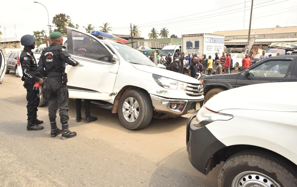 Also, two police officers driving a Pickup marked “Escort” on a one-way lane at Toyota Bus Stop along Apapa-Oshodi Expressway were accosted by the Squad. The vehicle was impounded alongside the car of a naval rating driving against traffic close to Itire roundabout.