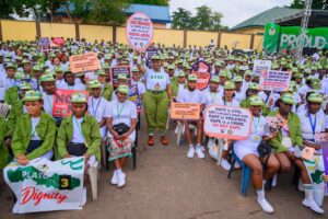 The First Lady lauded the corps members for their resilience and patriotic spirit in serving the Nation, stressing that their commitment in enduring camping activities, following laid down rules and regulations guiding the Orientation Programme was commendable.