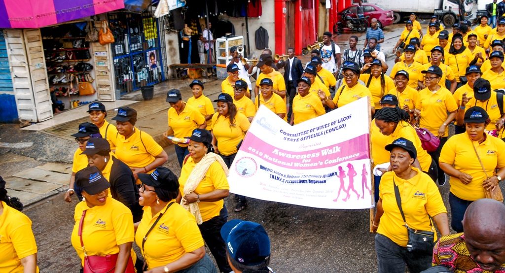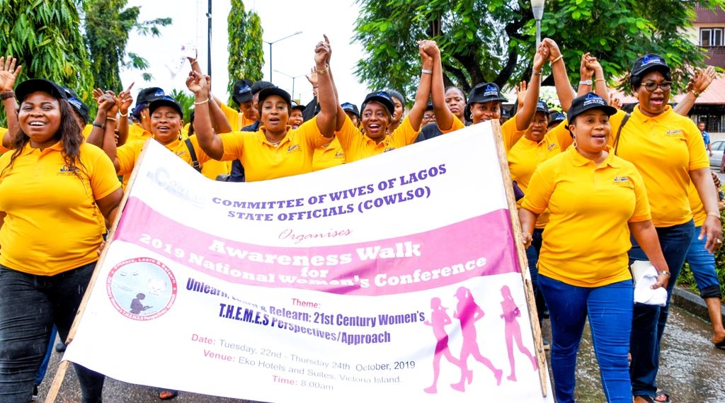 The First Lady, accompanied by the wife of the Deputy Governor, Mrs Oluremi Hamzat and hundreds of COWLSO members, also embarked on ‘Awareness Walk’ from LASUTH to Lagos House in Alausa, Ikeja, as part of efforts to further inform residents on the forthcoming National Women Conference of COWLSO scheduled to hold from October 22 to 24, 2019 at the Convention Centre of Eko Hotels and Suites, Victoria Island, Lagos.