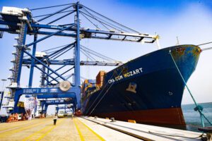 President Muhammadu Buhari on Monday officially inaugurated the Lekki Deep Sea Port located in Itoke village, Ibeju-Lekki, Lagos, observing the offloading from CMA CGM Mozart at the Quay.