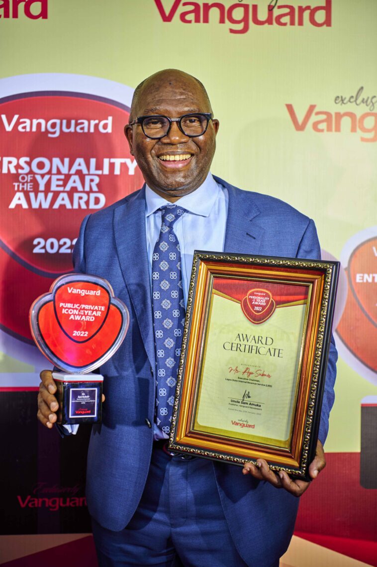 Mr Ayodele Subair, Executive Chairman, Lagos State Internal Revenue Service (LIRS) has been conferred with the 2022 Public Sector Icon of the year at the 11th edition of the Vanguard Personality of the Year Award held at the Eko Hotels and Suites, Victoria Island, Lagos on Friday, January 27, 2023.