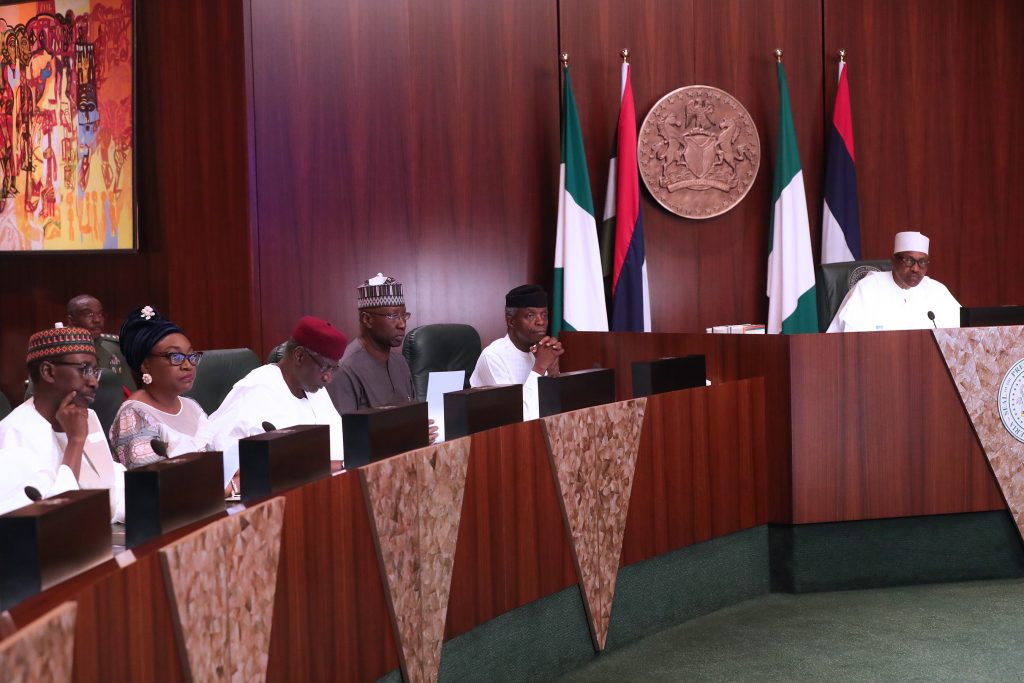R-L; President Muhammadu Buhari, Vice President Yemi Osibanjo, SGF, Mr. Boss Mustapha, Chief of Staff Abba Kyari, Head of Civil Service of the Feedral, Mrs Winifred Oyo-Itaand NSA Major-General Babagana Monguno
