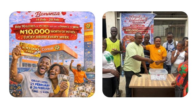 The grand finale is scheduled to take place on February 28 at 12 noon. Motorists in Lagos and Ogun states are encouraged to visit participating Conoil outlets to obtain their tickets and be part of the final draw as the Valentine celebration concludes.
