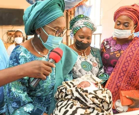 The First Lady of Ondo State, Arabinrin Betty Anyanwu-Akeredolu, has welcomed the first baby of the year, Baby Adanlawo (male) who was born at 4:15 am at the Mother and Child Hospital, Oke Aro, Akure.