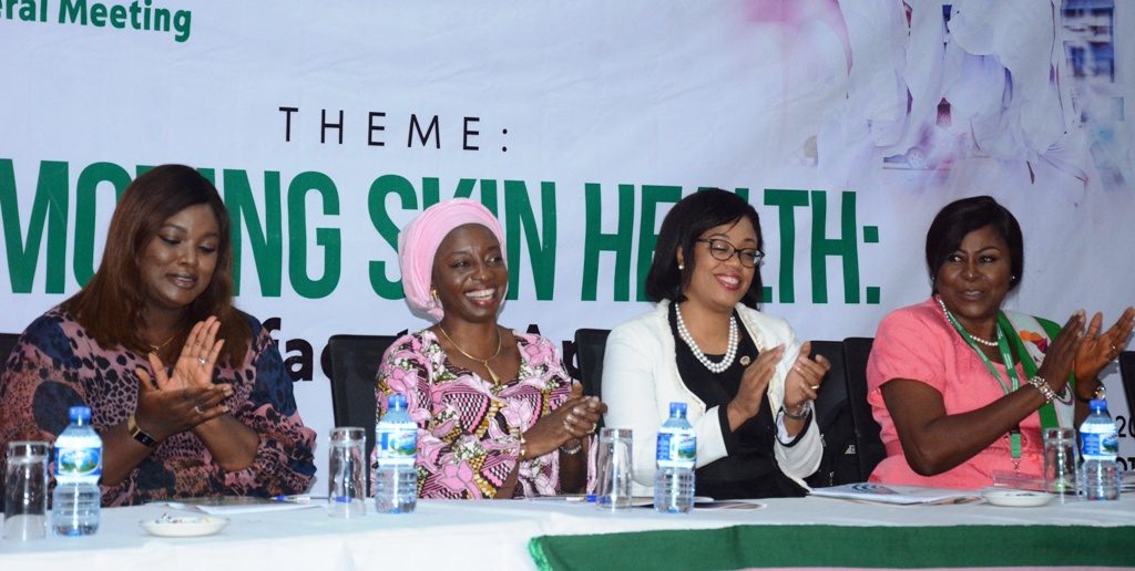 L-R: Representative of Permanent Secretary, Ministry of Health, Dr. Yeside Agboola; First Lady of Lagos State, Dr. (Mrs) Ibijoke Sanwo-Olu; Chairperson of the Day/ Managing Director, Synlab Nigeria, Dr. Pamela Ajayi and President, National Association of Dermatologists (NAD), Dr. Grace Chita Okubo